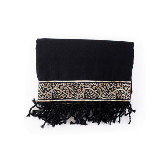 Hand-embroidered "Hayek" scarf in wool and linen - Black and gold